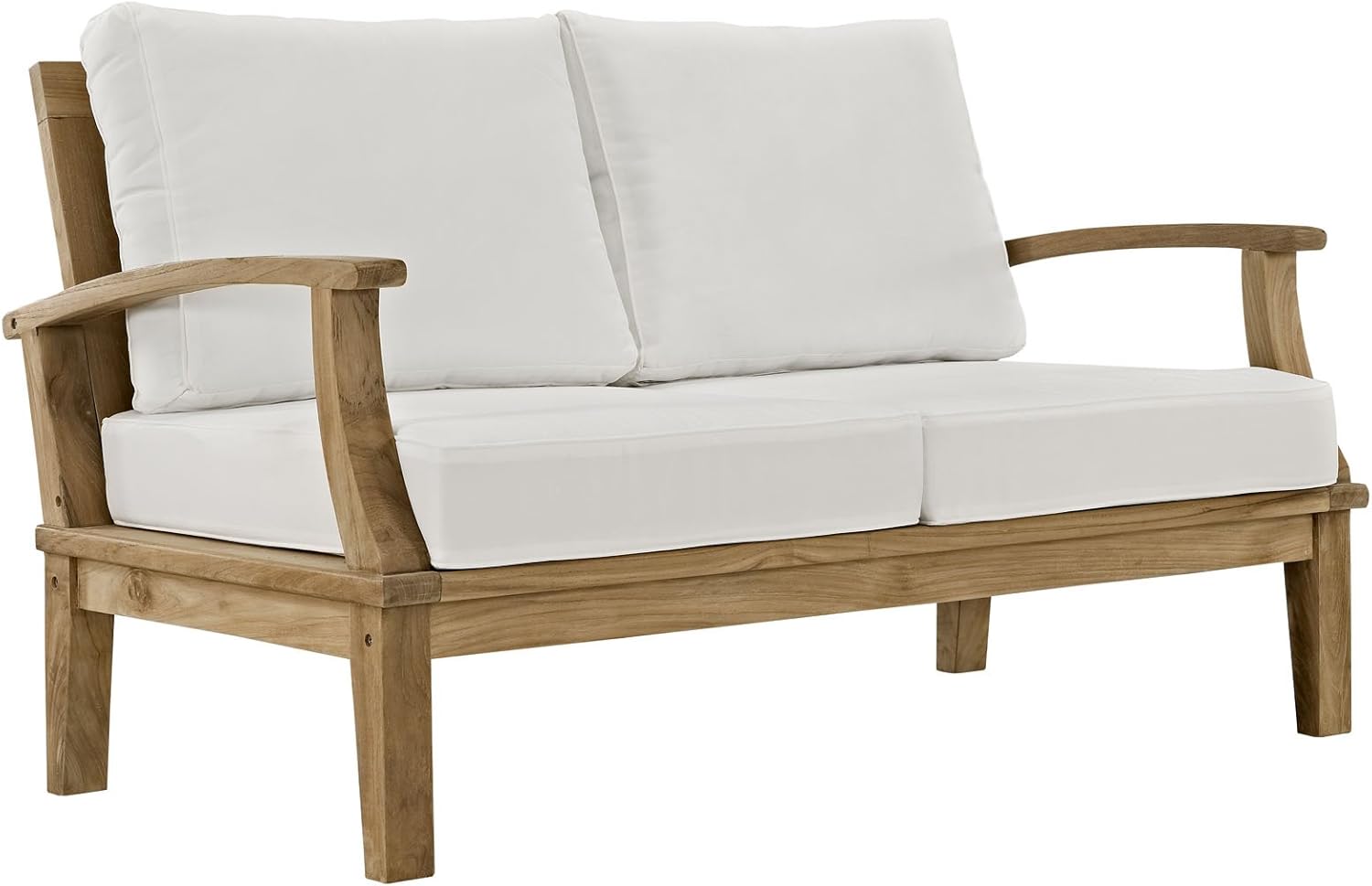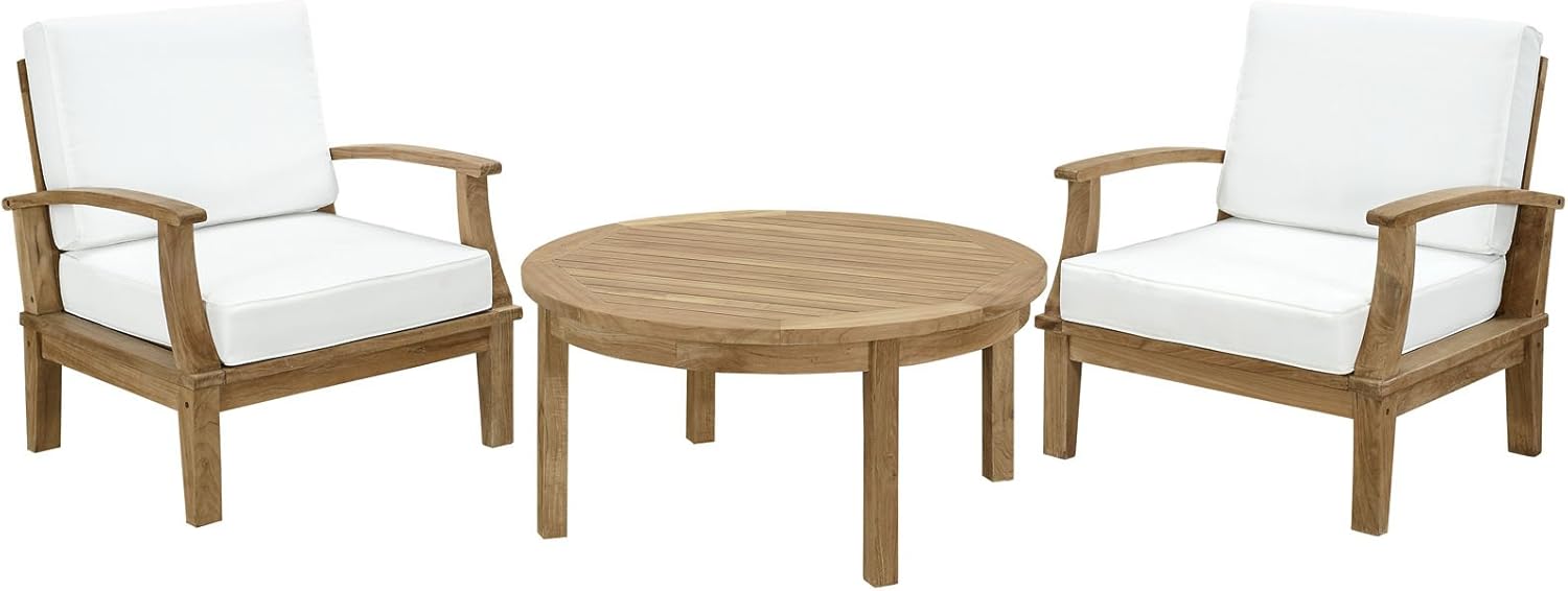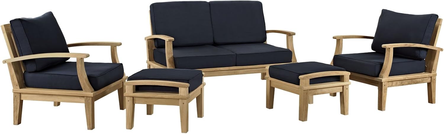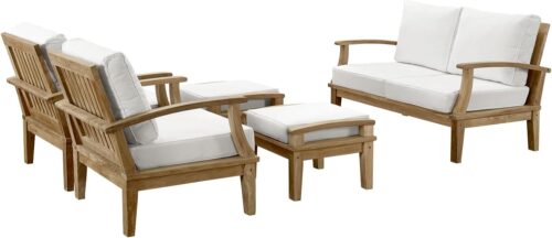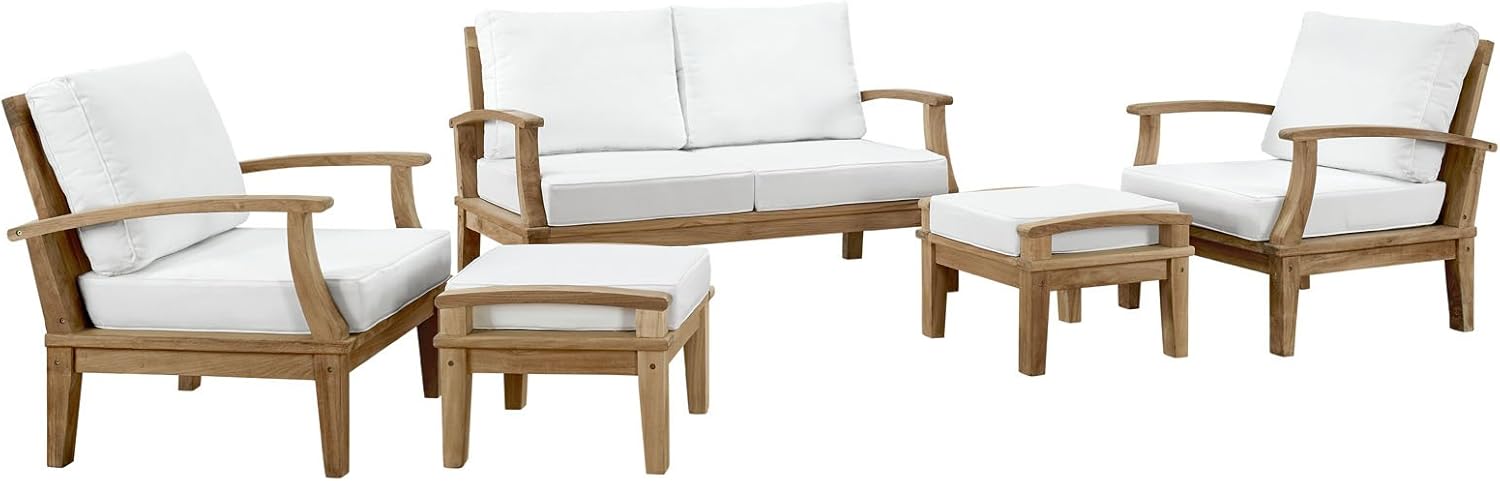 Modway Marina Premium Grade A Teak Wood 5-Piece Outdoor Patio Furniture Set in Natural White