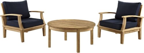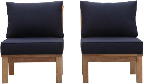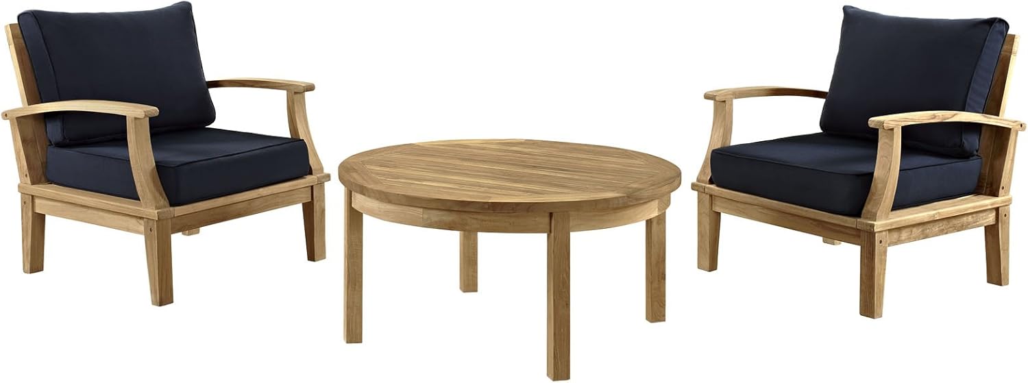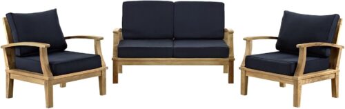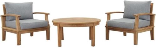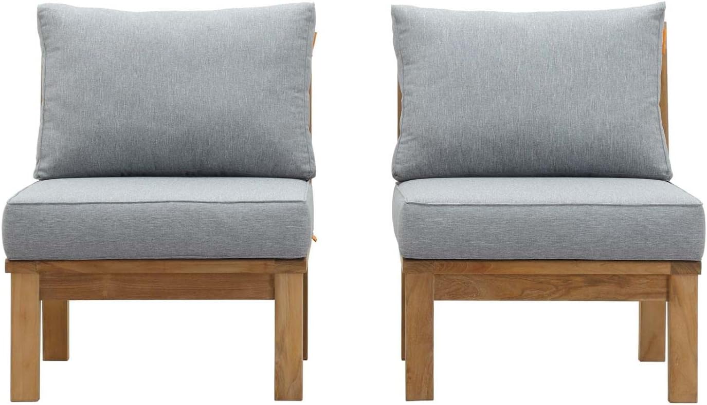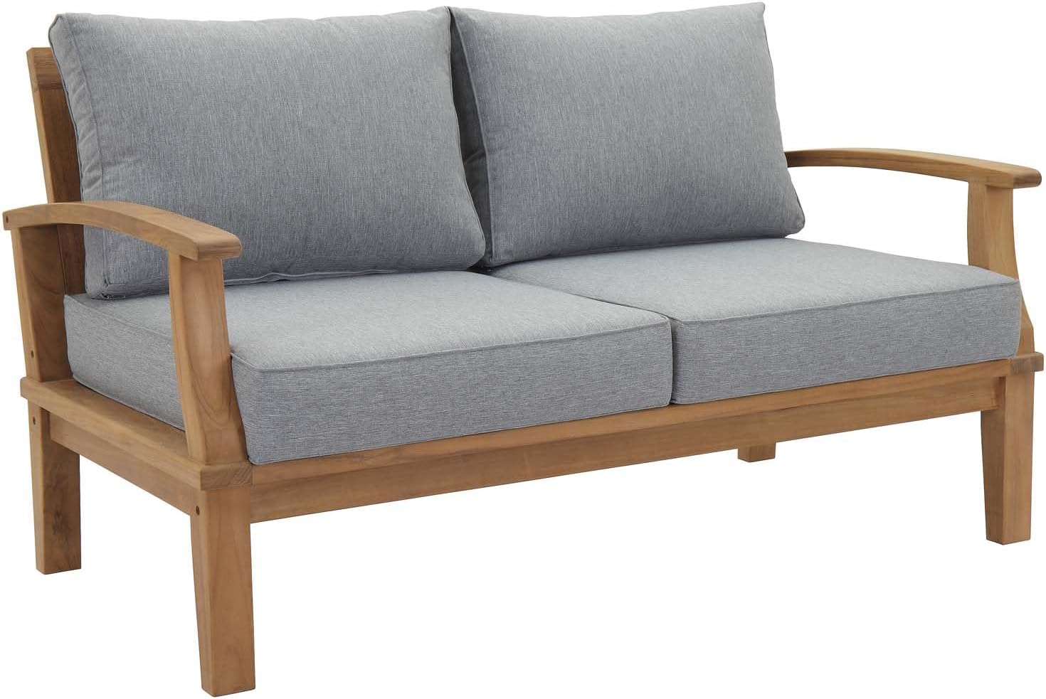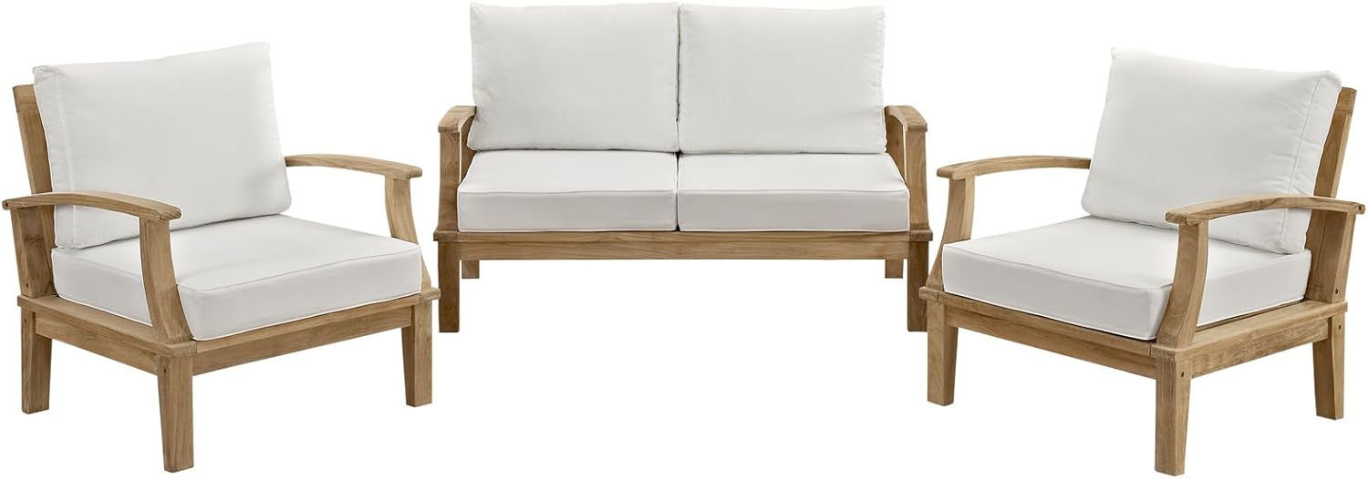 Modway Marina Premium Grade A Teak Wood 5-Piece Outdoor Patio Furniture Set in Natural White