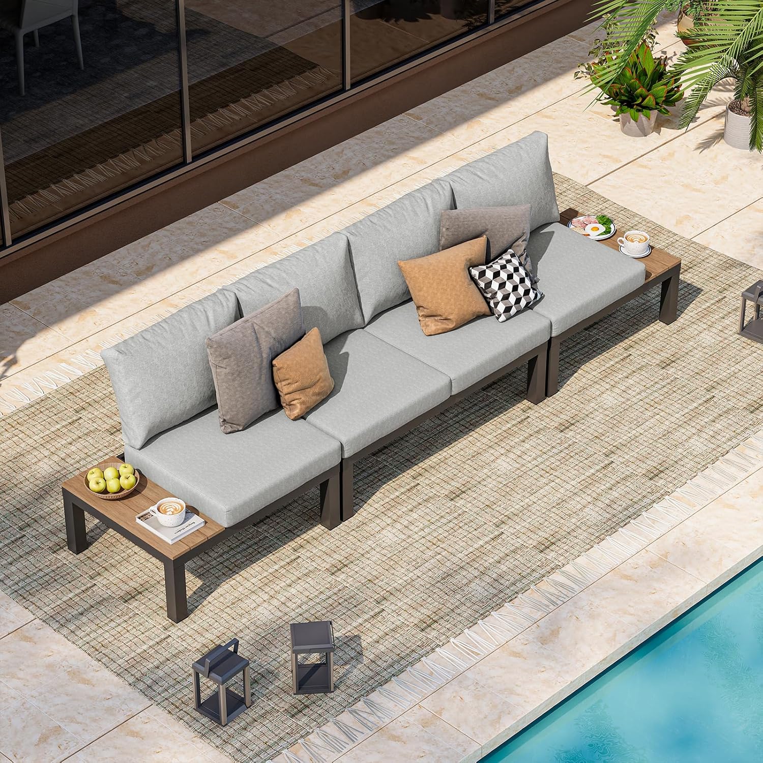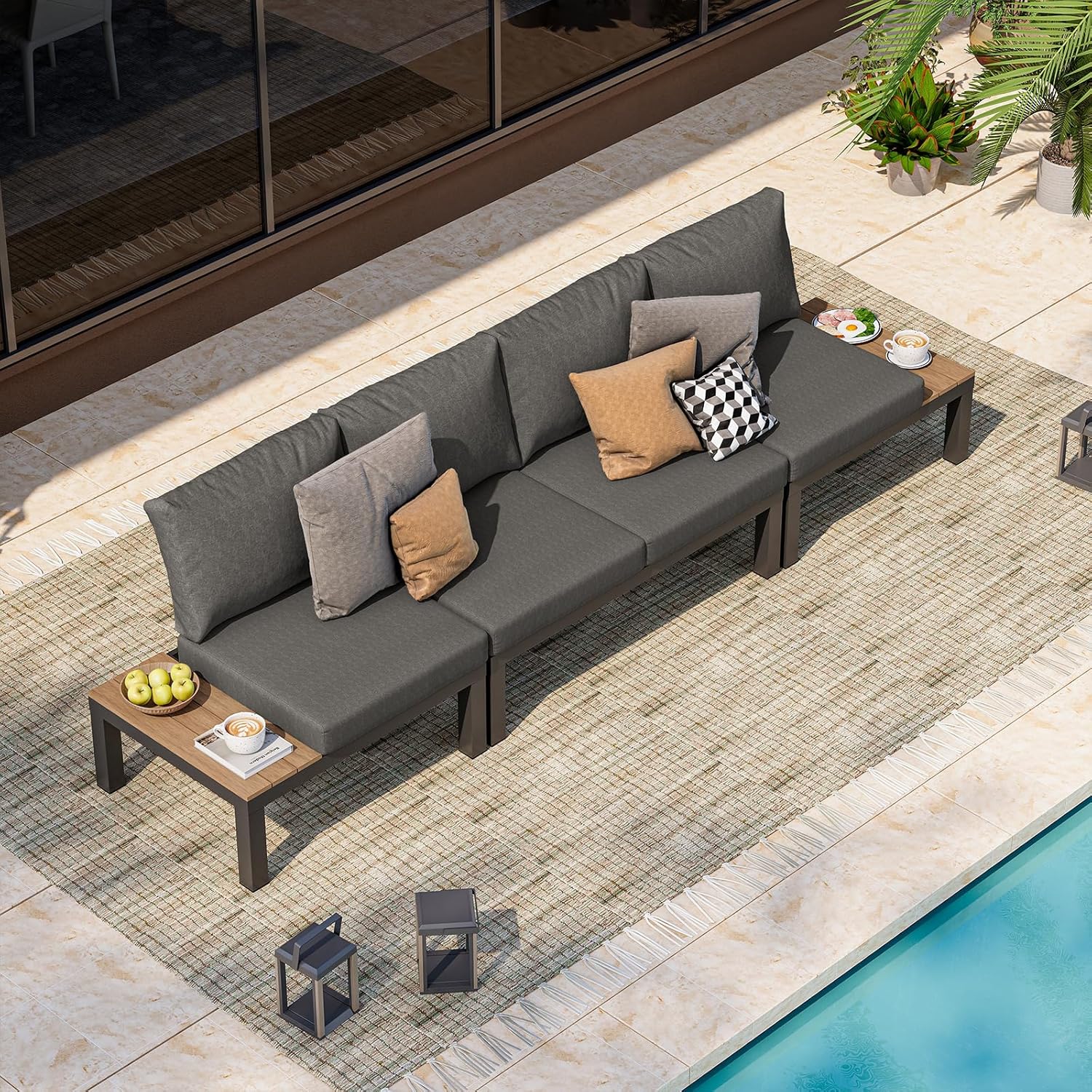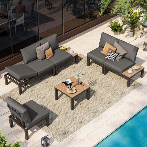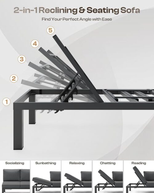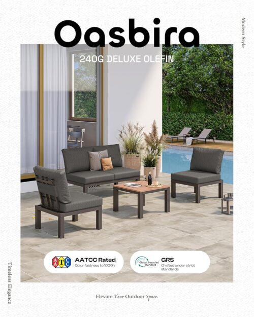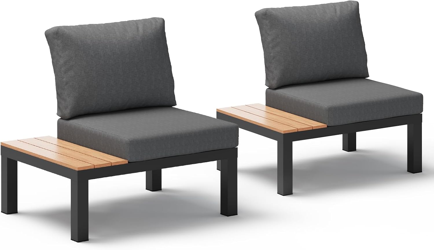Oasbira Aluminum Outdoor Patio Sofa Set, 2 Seats Modular Sectional Sofa with Side Table, Thick & Removable Cushions, All-Weather Outdoor Conversation Sets for Garden & Yard, Graphite