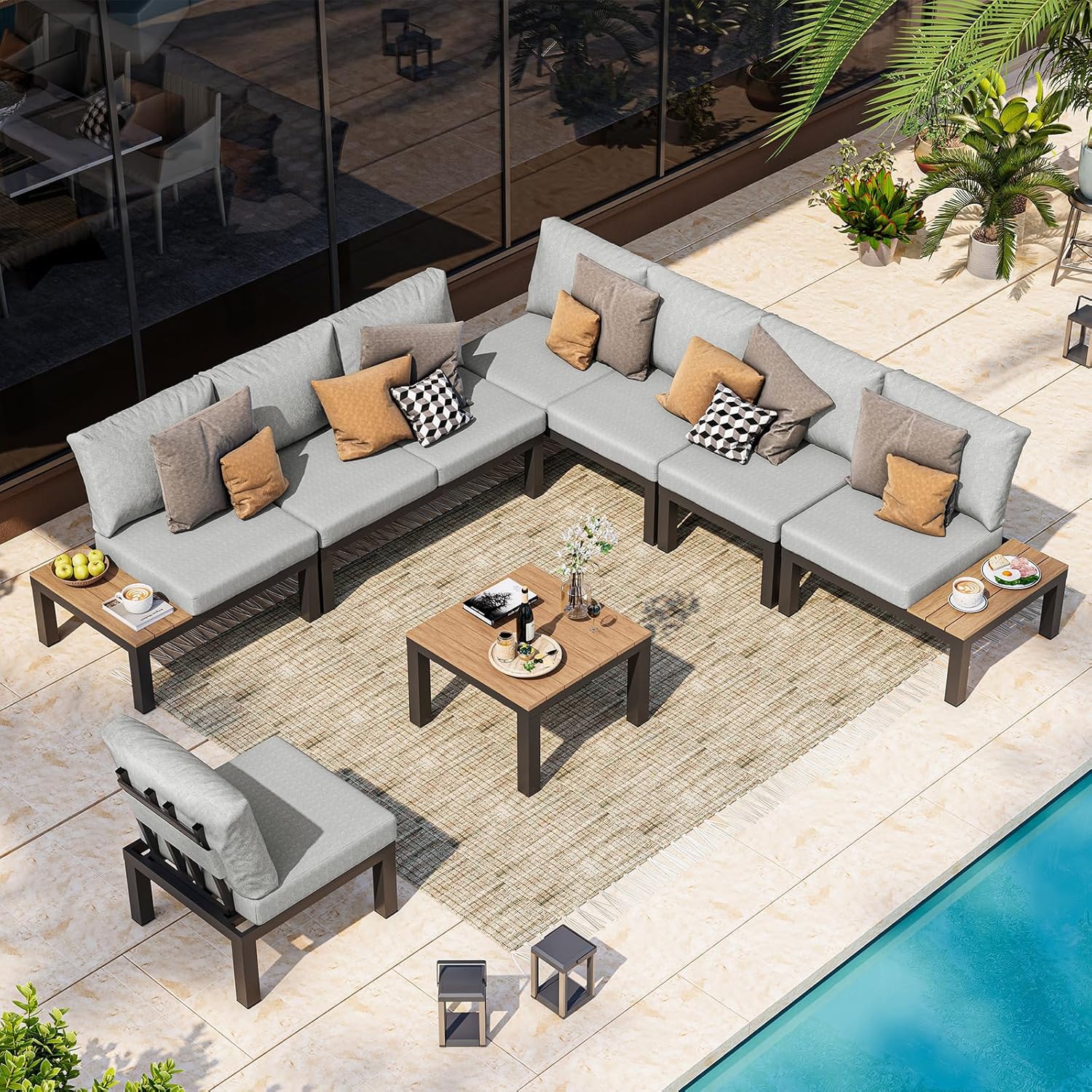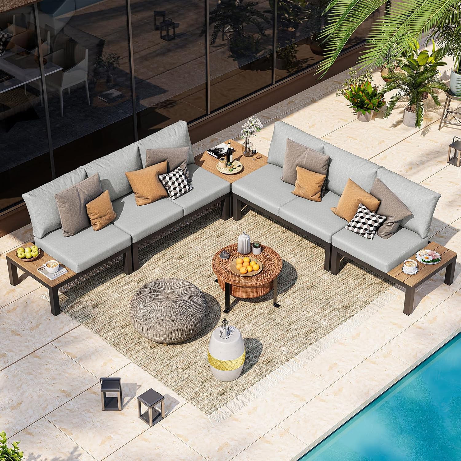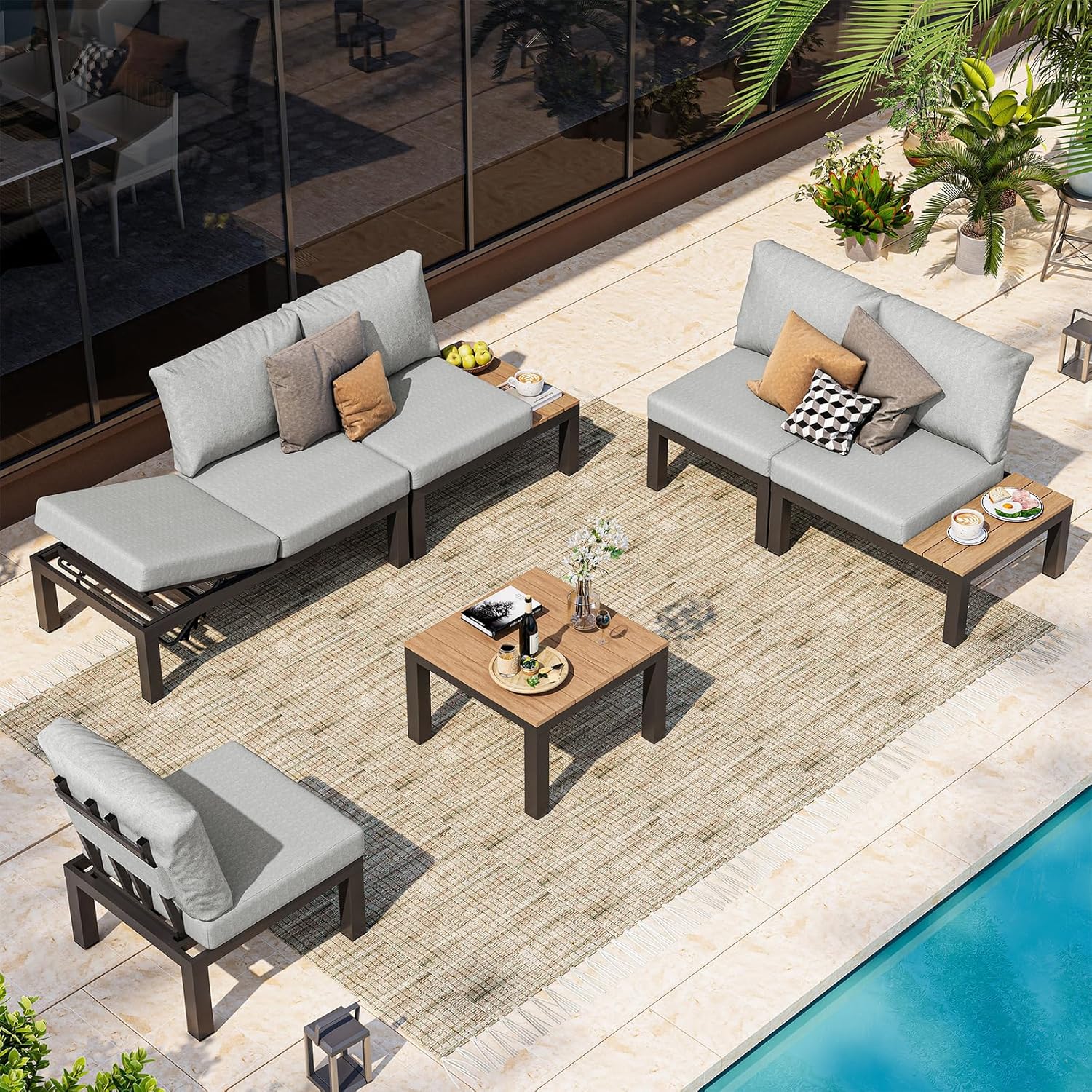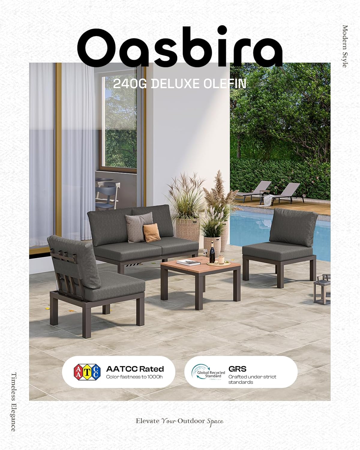 Oasbira Aluminum Outdoor Patio Sofa Set, 2 Seats Modular Sectional Sofa with Side Table, Thick & Removable Cushions, All-Weather Outdoor Conversation Sets for Garden & Yard, Graphite