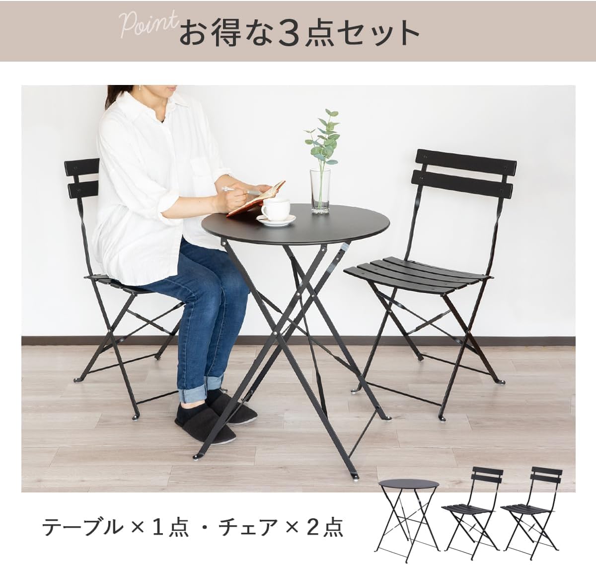 SAYA KIJI Indoor/Outdoor 3-Piece Foldable Bistro Set, Folding Outdoor Patio Furniture Sets, 2 Chairs and 1 Table, Weather-Resistant Outdoor/Indoor Conversation Set for Patio, Yellow, US001