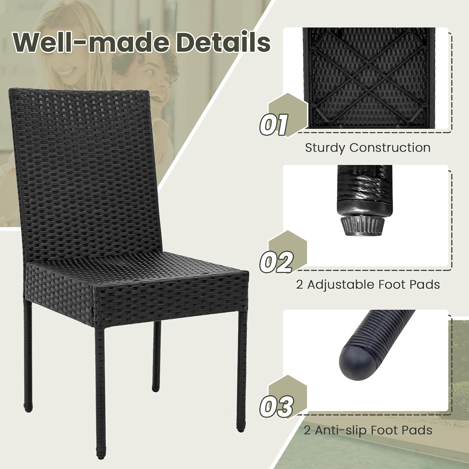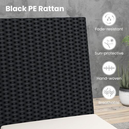 - Premium PE Rattan: Crafted with black PE wicker, these patio dining chairs are not only elegant for timeless addition but also fade-resistant and sun-protective for outdoor durability.